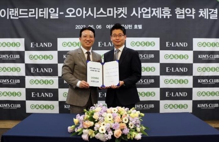 특히 이랜드리테일의 킴스클럽 상품을 오아시스마켓의 온·오프라인 플랫폼에 판매하는 등 산지 개발과 신선상품 유통 시스템 구축에서 협력할 계획.