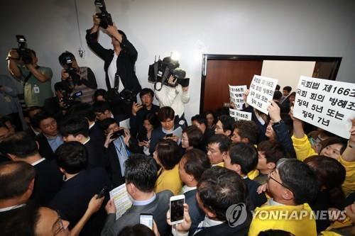 여야는 앞서 지난 4월 말 국회에서 선거제·개혁법안 패스트트랙 지정을 둘러싸고 극심한 몸싸움을 벌이는 등 격렬하게 대치하고 있다.