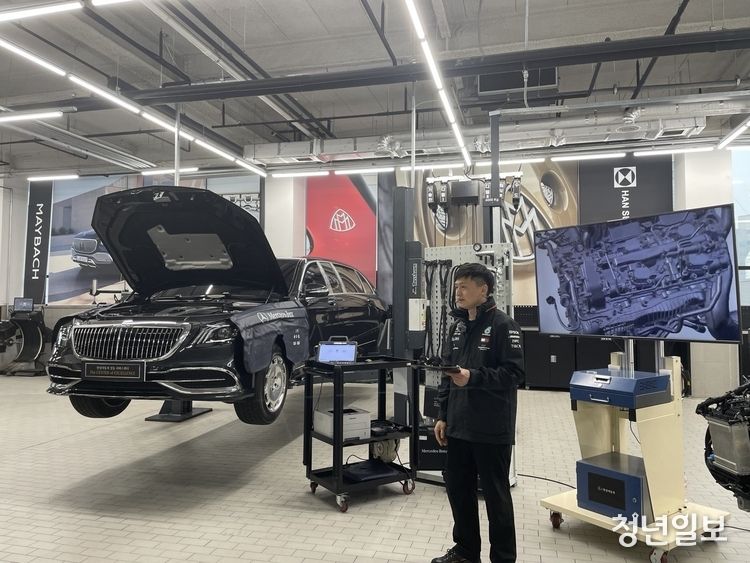 미디어 투어에서는 전기차부터 AMG·마이바흐 등 벤츠의 고성능 차량 수리 전담팀이 시범에 나서 프리미엄 차량 정비 기술을 시현했다. 전담팀은 고성능 차에 걸맞는 차량 유지·관리 시스템의 원할하고 전문성이 돋보이는 과정을 선보였다