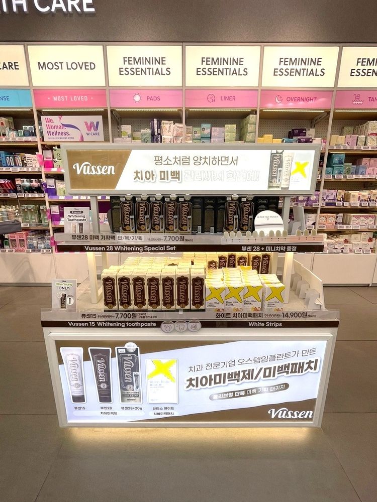 해당 올리브영 매장에서 특별 프로모션을 진행하는 제품은 오스템파마의 미백 제품 라인업 3종으로, 치약형 치아미백제 '뷰센28'과 '뷰센15', 겔타입 '뷰티스 화이트 치아미백패치'다.