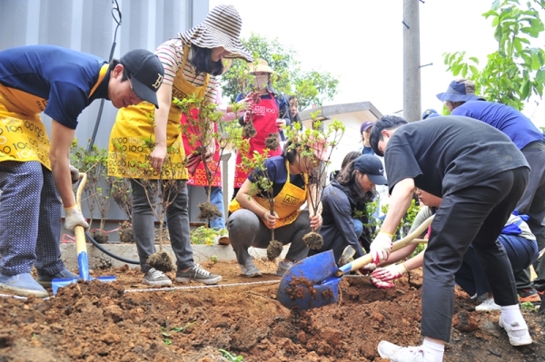 강원 산불 피해 가구의 주거 환경 개선을 위해 정원을 만들어주는 활동도 진행됐다. 90여 명의 직원들은 강원도 강릉시 옥계면에 산불 피해 이재민을 위해 임시로 설치된 이동식 주택을 찾아 앞마당에 나무와 꽃을 심어주는 활동도 펼쳤다. 고령의 노인들이 대형 화재를 겪으면서 얻게 된 트라우마를 치료함과 동시에 삭막하게 타버린 주거 환경에 생기와 활력을 불어넣을 수 있게 됐다.