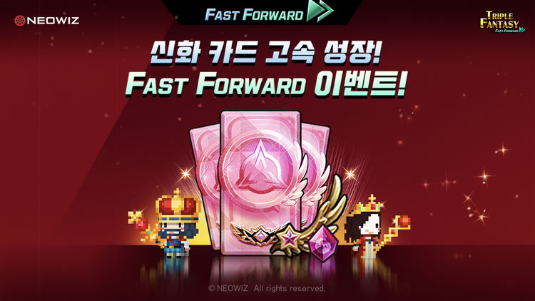 인게임 퀘스트에 참여하면 신화카드 및 전설카드, 고급 성장 재료 등을 획득할 수 있는 '왕국의 부름' 이벤트와 퀘스트 참여시 신화카드를 제공하는 '여신강림' 등 신규 이용자 대상의 다양한 이벤트를 진행한다. 이와 함께 원하는 카드가 나올 때까지 무제한 소환할 수 있고, 전설 카드 최소 2장을 획득할 수 있는 '선별소환' 이벤트와 신규 가입 시 7일간 총 500회의 무료 소환을 제공하는 '500회 소환 이벤트'도 진행한다.