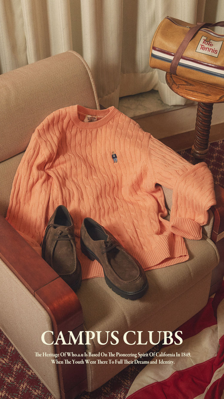 이번 컬렉션은 캠퍼스 생활을 모티브로 아우터, 스웨터, 셔츠, 바지 등 20종의 웨어러블한 상품으로 구성됐다.