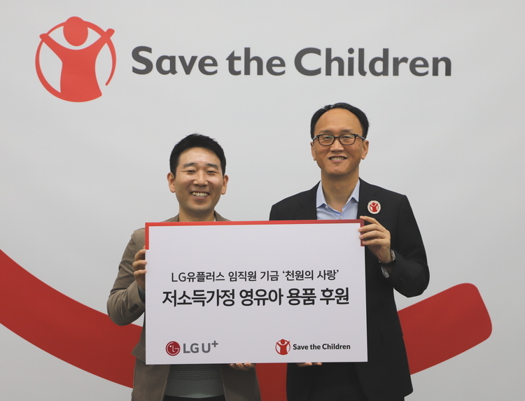 LG유플러스는 16일 서울 마포구 소재 국제아동권리NGO 세이브더칠드런 본부에서 임직원 기금 'U+ 천원의 사랑' 기부금 전달식을 가졌다고 밝혔다.