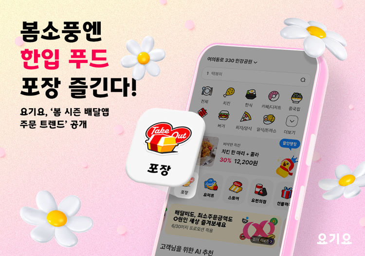 이주형 요기요 데이터실장은 “봄철 포장 주문에 대한 선호도는 야외 여가 활동과도 큰 관련이 있다”라며 “앞으로도 소비자들이 배달앱을 통해 포장 메뉴를 간편하고 편리하게 즐길 수 있도록 다방면으로 고민해 나갈 것”이라고 말했다.