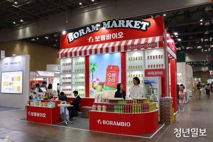 지난 11일 오전 고양 킨텍스 제1전시장에 들어선 순간 가장 먼저 눈에 들어온 건 선명한 수박색이었다. 그 중심엔 '수박소다'라는 제품을 전면에 내세운 보람바이오 부스가 관람객들로 북적이고 있었다.