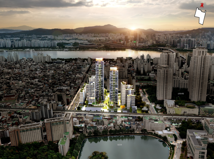 시는 삼면이 주변 개발로 둘러싸인 입지적 약점을 보완하기 위해 열린 통경축과 층수 완화를 적용, 한강 조망을 최대한 확보하도록 했다.