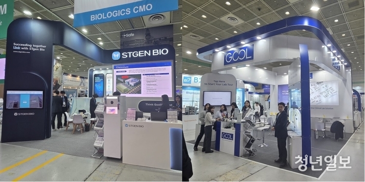 ![에스티젠바이오 부스(좌)와 GCCL 부스(우). [사진=청년일보]](http://www.youthdaily.co.kr/data/photos/20251042/art_17605798652259_3a040e.jpg)