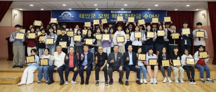 이날 귀뚜라미그룹은 태안 지역 중학생 37명, 고등학생 28명 등 총 65명의 학력 우수자 및 저소득 가구 학생들에게 총 5천만 원의 장학금을 전달하였다.
