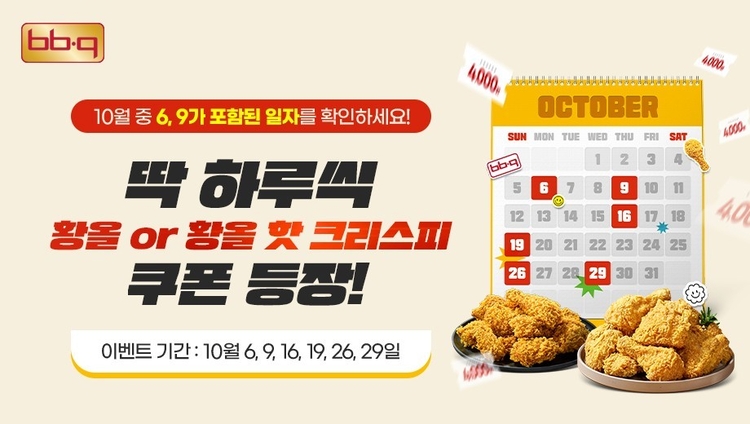 BBQ 관계자는 "669데이는 단순한 할인 이벤트를 넘어 브랜드를 고객과 함께 즐기는 하나의 문화로 자리 잡고 있다"며 "올가을 마지막 669데이 혜택까지 놓치지 마시길 바란다"고 전했다.