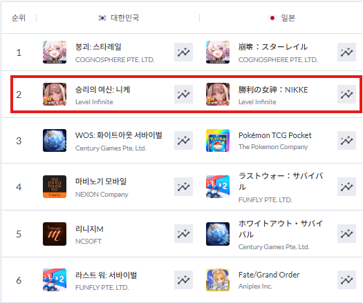 니케는 2022년 출시 후 일본 앱스토어 매출 1위를 총 8차례 기록하며 '서브컬처 게임의 본고장' 일본 시장에서 지속적인 흥행세를 이어가고 있다. 또한 한국, 북미 등 글로벌 주요 지역에서도 매출 상위권에 안착하며, 장기 흥행 IP로서의 저력을 다시 한번 입증했다.