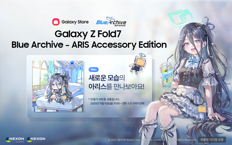 한편, '블루 아카이브'의 '갤럭시 Z 폴드7 아리스 액세서리 에디션'에 관한 자세한 내용은 공식 커뮤니티에서 확인할 수 있다.