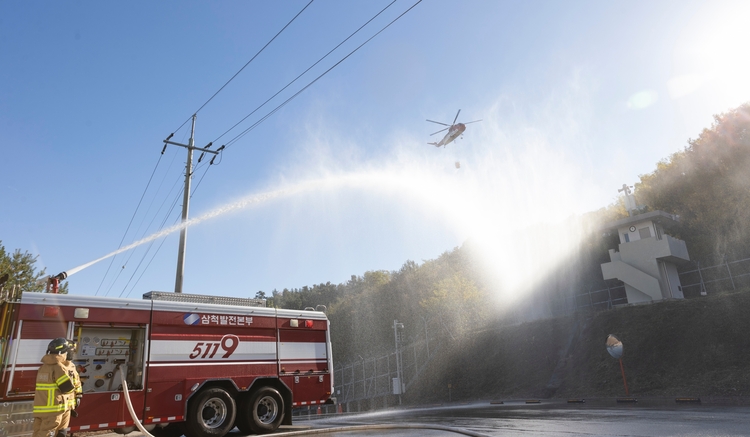 이날 훈련에는 삼척빛드림본부 자체 소방대 뿐 아니라, 유관기관인 삼척소방서 진화차량과 삼척시청 대형 산불진화용 헬기가 동원되어 훈련의 실효성을 한층 강화했다.