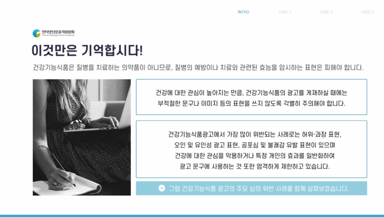 【 청년일보 】 12일 인터넷신문윤리위원회(인신윤위)는 올 1월부터 8월까지 누적 광고 심의 위반이 상대적으로 높은 30개 서약 매체에 최근 교육용 안내 영상을 제작·배포했다고 12일 밝혔다.