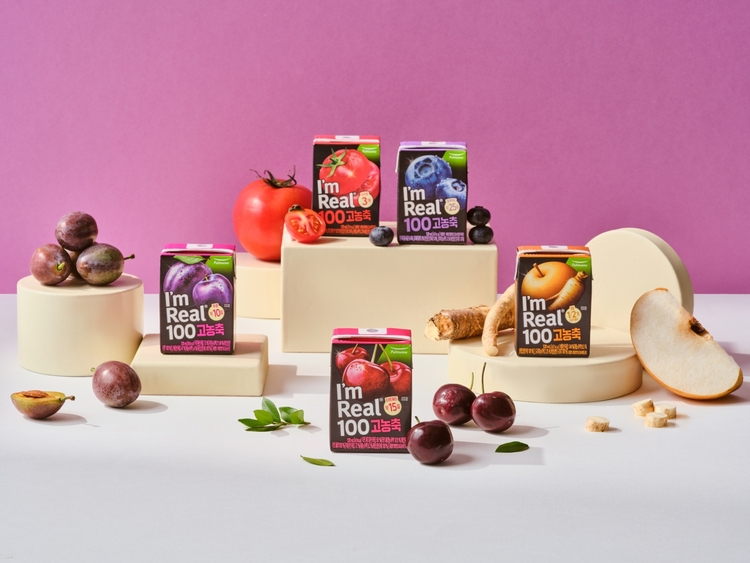 풀무원은 지난 4월 실온 과채주스 브랜드 '아임리얼 100'을 론칭하고, 일반 과채주스와 고농축 과채주스를 선보이고 있다.