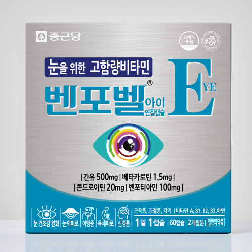 종근당 관계자는 “눈 건강을 위해 섭취하는 루테인이 예방적 차원의 건강기능식품이라면, 벤포벨 아이는 눈 건조감·눈 피로 등에 직접적인 증상 완화 효과가 입증된 일반의약품”이라고 설명했다.