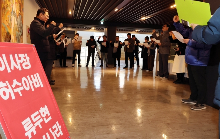 그러면서 "대학과 반목하려는 게 아니라 미래를 위해 투쟁하고 있는 것"이라며 "판단력을 잃고 처장단에 이름을 올린 교수들은 보직에서 즉각 물러나고, 자격 없는 이사장과 꼭두각시 총장은 즉각 퇴진해야 한다"고 촉구했다.