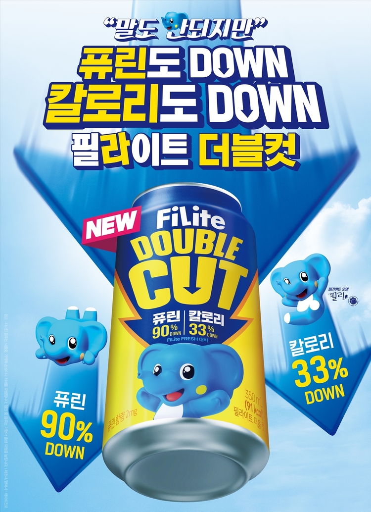 '필라이트 더블 컷'은 통풍을 유발하는 성분으로 알려진 퓨린 함량을 기존 필라이트 후레쉬 대비 90%, 칼로리는 33% 낮춘 국내 유일한 기능성 발포주다. 두 성분을 낮추면서도 필라이트 고유의 'Fresh 저온숙성 공법'을 적용했다.