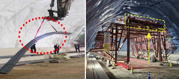 【 청년일보 】 롯데건설이 터널 공사 중 발생할 수 있는 안전사고를 예방하기 위해 새로운 철근 양중(자재를 들어 올리는 작업) 기술을 현장에 도입했다.