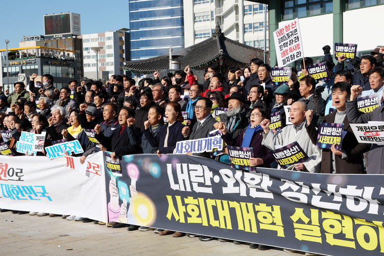 부산 역시 '내란청산사회대개혁부산행동'이 부산시의회에서 기자회견을 열고 "검찰·사법 권력을 장악한 내란집단이 반격을 시도하고 있다"며 강력한 처벌을 요구했다.