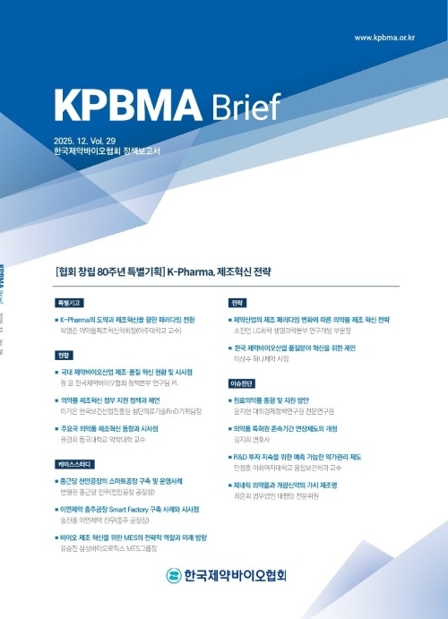 한국제약바이오협회는 창립 80주년 특별기획으로 ‘K-Pharma, 제조혁신 전략’을 주제로 한 제29호 정책보고서(KPBMA Brief)를 발간했다고 7일 밝혔다.