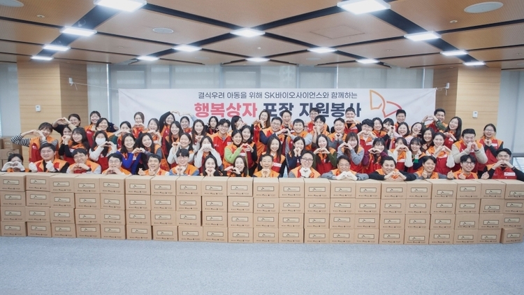 SK바이오사이언스는 지난 15일 경기도 성남시 판교 본사에서 임직원 주도로 진행된 봉사활동을 통해 행복상자 300개를 포장, 생산시설 L HOUSE가 위치한 안동지역 결식 우려 아동들에게 전달했다고 16일 밝혔다.
