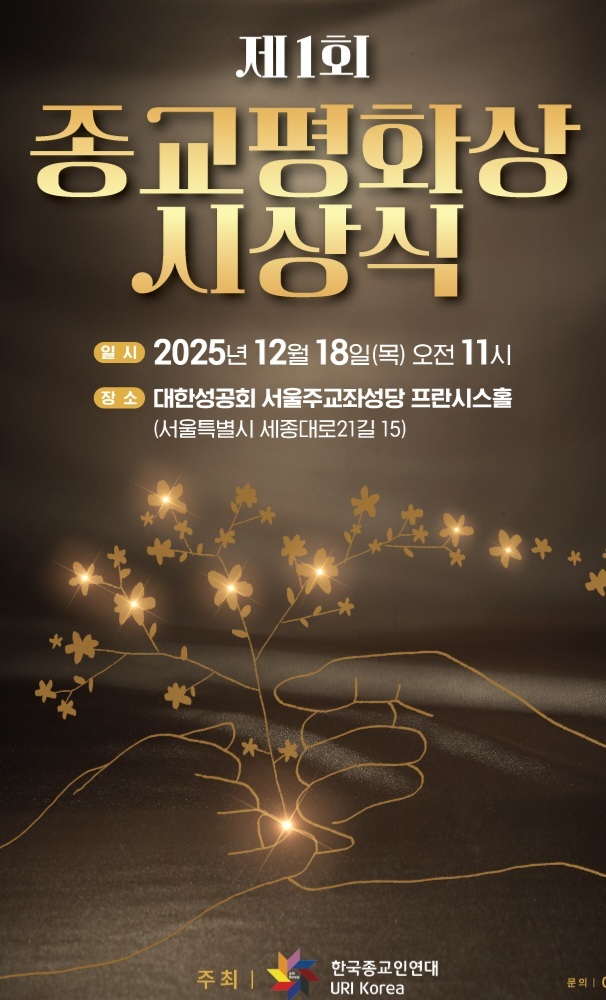 【 청년일보 】 한국종교인연대(URI-K)는 오는 18일 오전 11시 대한성공회 서울주교좌성당 프란시스홀에서 제1회 종교평화상 시상식을 개최한다고 16일 밝혔다.