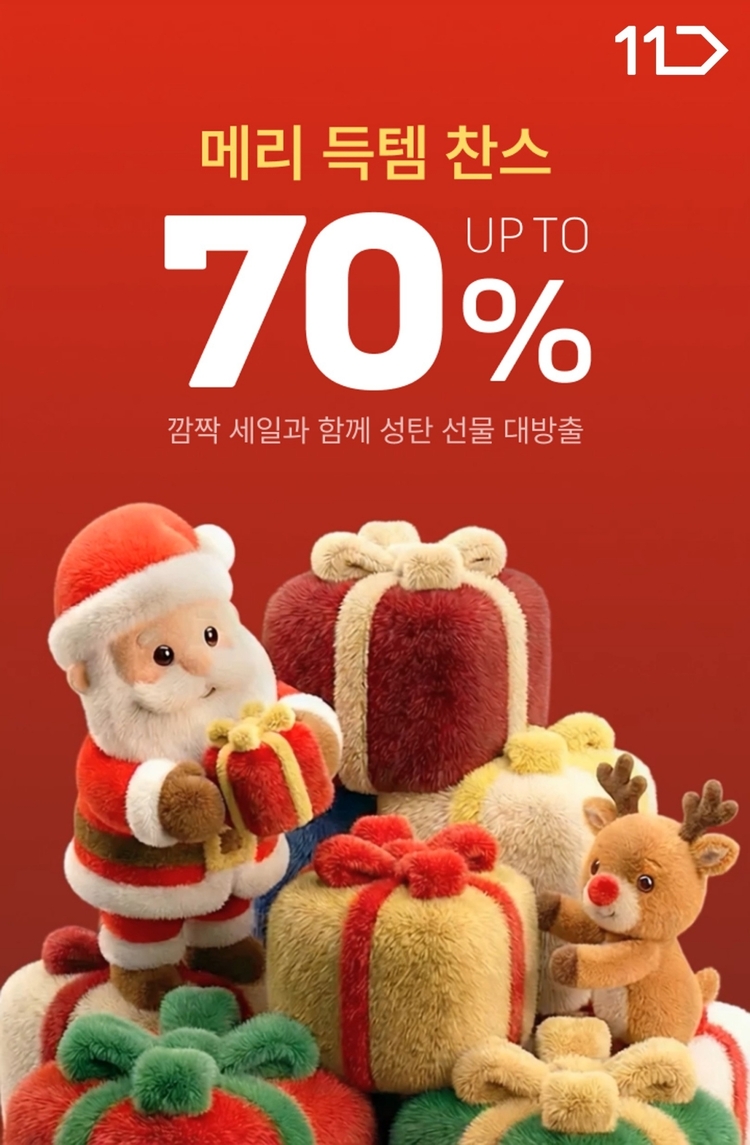 이 행사에서 11번가는 장난감, 디지털, 뷰티, e쿠폰, 문구 등 홀리데이 시즌 수요가 높은 카테고리의 상품을 엄선해 최대 70% 할인가로 판매한다.