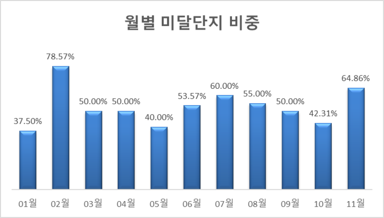 이는 전월(42.31%) 대비 22.55%포인트 급등한 수치로, 신규 분양 시장의 수요 흡수력이 현저히 떨어졌다.
