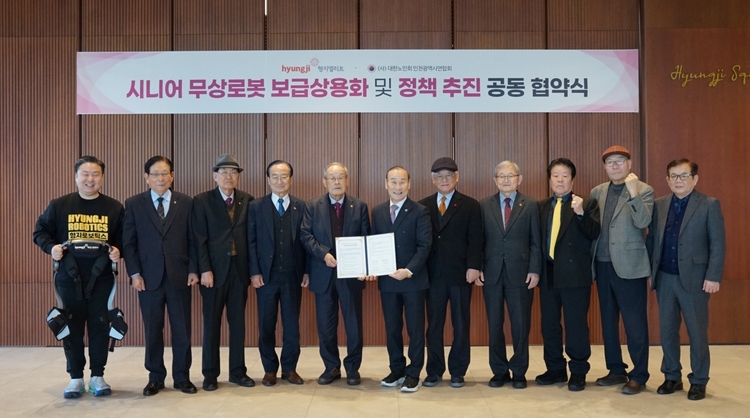 【 청년일보 】 패션그룹형지는 대한노인회와 '시니어 무상로봇 보급 상용화 및 정책 추진'을 위한 공동 협약을 체결하고, 시니어 데이터 사이언스 기업으로 도약을 위한 본격 행보에 나섰다고 13일 밝혔다.