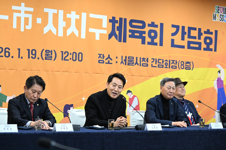 서울시는 오 시장이 19일 서울시청 본관 8층 간담회장에서 시·구 체육회장들과 오찬 간담회를 가졌다고 밝혔다.