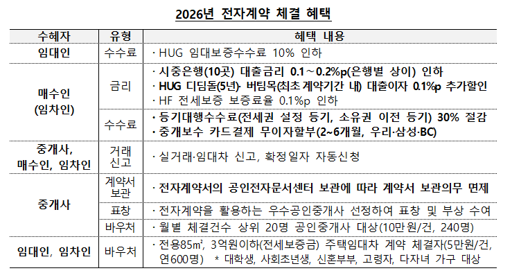 경제적 혜택도 이용자 유입을 이끌었다. 전자계약 이용 시 매수인과 임차인은 시중은행 대출 금리를 0.1~0.2%포인트 우대받을 수 있으며, 등기대행수수료 30% 절감 및 주택도시보증공사(HUG) 임대보증수수료 10% 인하 등의 비용 절감 효과를 누릴 수 있다.