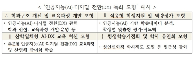 각 참여 대학은 지역 산업과 대학별 강점을 결합한 'AI·DX 특화 모형'을 구축하게 된다.