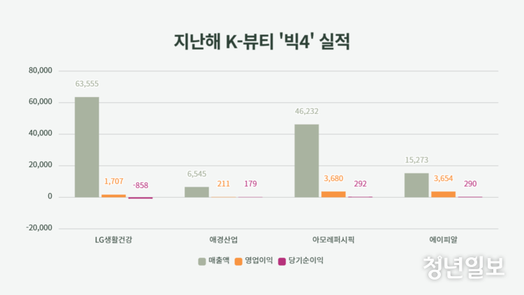 【 청년일보 】 국내 주요 화장품 기업들이 지난해 거둬들인 성과를 두고 희비가 교차하고 있다. LG생활건강과 애경은 K-뷰티의 흥행에도 부진한 성과를 기록한 반면 아모레퍼시픽과 에이피알은 괄목할 만한 성과를 이뤄내며 K-뷰티의 흥행 기류를 이어갔다.