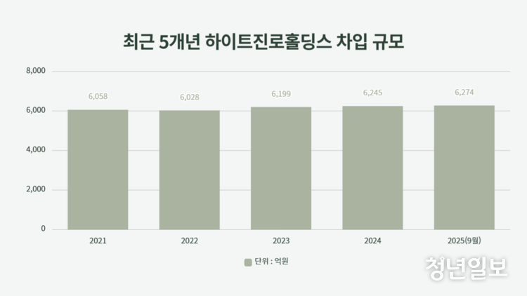 문제는 모회사 구조다. 하이트진로홀딩스의 차입금은 최근 수년간 6천억원대에서 큰 변동 없이 유지되고 있다.