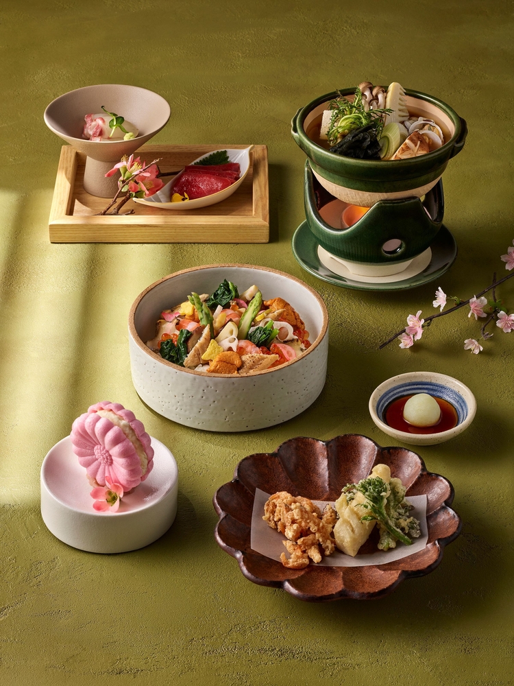 일식 레스토랑 ‘라쿠’는 분홍빛 벚꽃과 제철 해산물을 중심으로 한 스페셜 런치 코스를 선보인다. 생 참치와 봄 도미 사시미, 시즈오카 벚꽃새우와 산채 튀김, 무시 스시, 모시조개와 봄 채소 미소나베, 벚꽃 모나카까지 이어지도록 구성했다.
