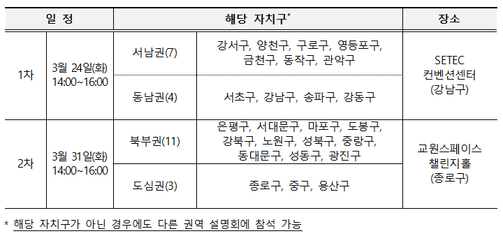 신규 후보지 공모와 관련한 주민 설명회는 3월 24일과 31일 권역별로 두 차례 개최된다. 설명회에서는 공모 절차 안내와 함께 기존 사업 추진 우수 사례가 공유될 예정이다.