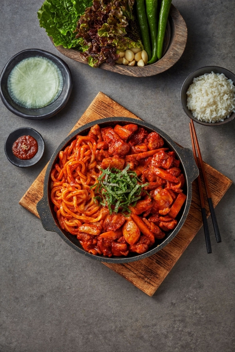 춘천식 철판 닭갈비는 닭다리살을 사용한 제품으로, 닭갈비 770g과 우동 사리면 230g으로 구성됐다.
