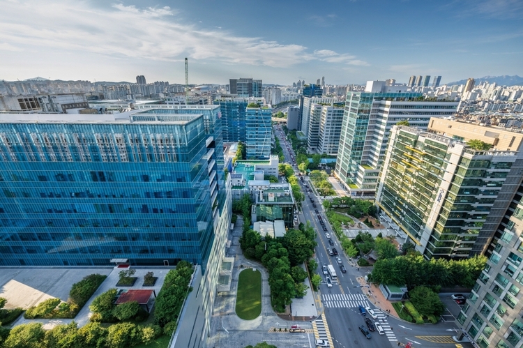 과거 제조 공장이 있던 자리에는 이제 문화와 업무가 공존하는 복합 지식산업센터들이 들어서고 있다. 넷마블 신사옥인 'G-타워'는 저층부에 캐릭터 박물관과 공공 공원을 배치해 시민들의 접근성을 높였다.