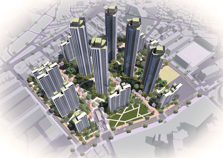 기존 630세대 단지를 최고 49층, 999가구 규모로 조성하는 이번 사업을 위해 삼성물산은 해체주의 건축의 거장 다니엘 리베스킨트와 협업해 역동적인 곡선미를 살린 외관과 조망형 아트라운지인 '스파이럴 쉘'을 제안했다.