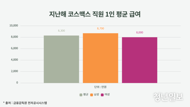 ◆ 코스맥스 연봉 8천300만원으로 전년比 하락…"신규 채용 영향"