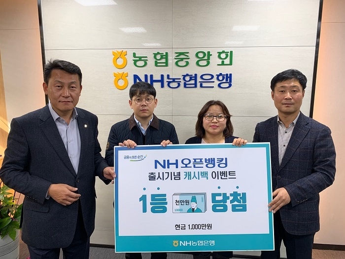 【 청년일보 】 NH농협은행(은행장 이대훈)은 27일 경기도 안성시 동본동에 소재한 농협은행 안성시지부에서 ‘NH오픈뱅킹 캐시백이벤트’ 1주차 1등 당첨 고객에게 당첨금 1000만원을 전달했다고 28일 밝혔다.