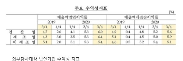 영업이익률과 부채비율 등 수익성과 안정성 지표들도 반도체·자동차 등이 주도하는 수출 회복에 힘입어 전반적으로 개선됐다.