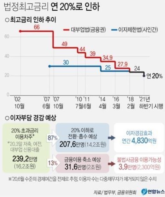【 청년일보 】 법정 최고금리가 연 20%로 4%포인트 감소한다.