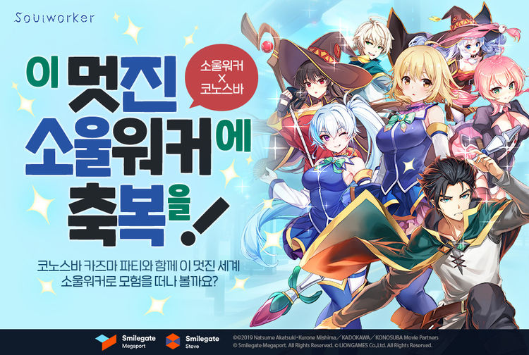 【 청년일보 】 스마일게이트 메가포트의 온라인 액션 RPG '소울워커'가 일본의 라이트 노벨 IP '이 멋진 세계에 축복을! 붉은 전설(이하 이멋세)'과 함께하는 콜라보레이션 이벤트를 진행한다.