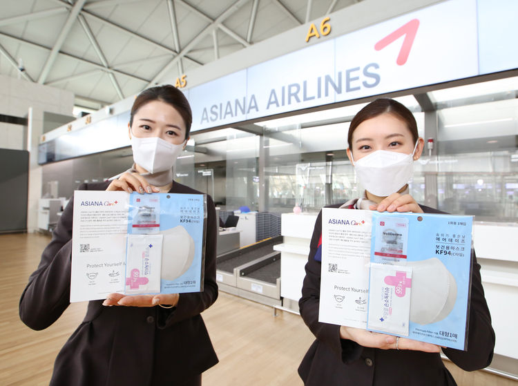 아시아나항공은 케어 플러스 키트 10만개를 제작해 이달 29일부터 인천국제공항 국제선 탑승객에게 배포할 예정이다. 키트는 KF94 에어 데이즈 마스크, 손 소독제 등으로 구성됐으며, 인천공항 아시아나항공 체크인 카운터에서 제공된다.
