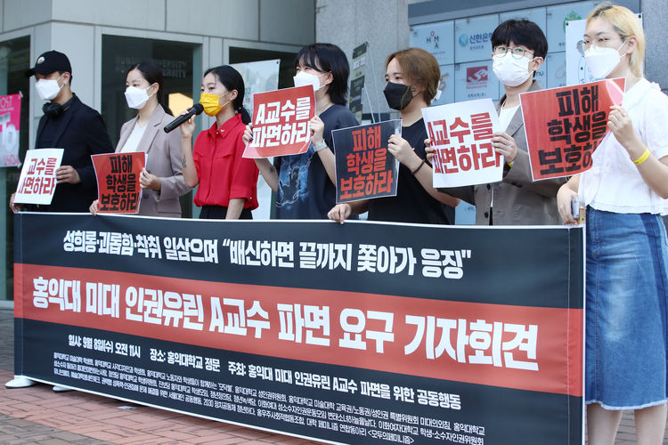 '홍익대 미대 인권유린 A 교수 파면을 위한 공동행동'은 기자회견을 열어 이 같은 사건을 공론화하고 수집한 피해 사례를 발표. 이들은 2018년부터 올해까지 피해를 본 것으로 파악된 학생은 10명가량이라고 전해.