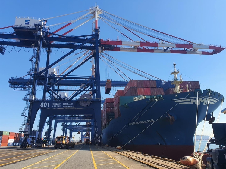 50번째 임시선박 5000TEU급 컨테이너선 'HMM 프리빌리지(Privilege)호'는 국내 수출기업 등 화물을 싣고 이날 광양항을 출발했다.오는 26일에 미국 타코마(Tacoma)항을 경유한 후 다음달 1일 LA항에 도착할 예정이다.