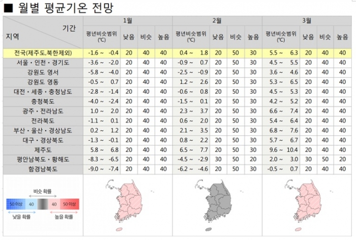 (월평균기온) 평년(-1.6~-0.4℃)과 비슷하거나 높겠다.