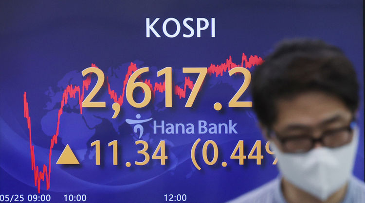 25일 한국거래소에 따르면 코스피는 전 거래일보다 11.35포인트(0.44%) 상승한 2,617.22에 거래를 마쳤다. 지수는 전장보다 15.88포인트(0.61%) 높은 2,621.75에 개장한 후 등락을 보이다 소폭 상승했다.